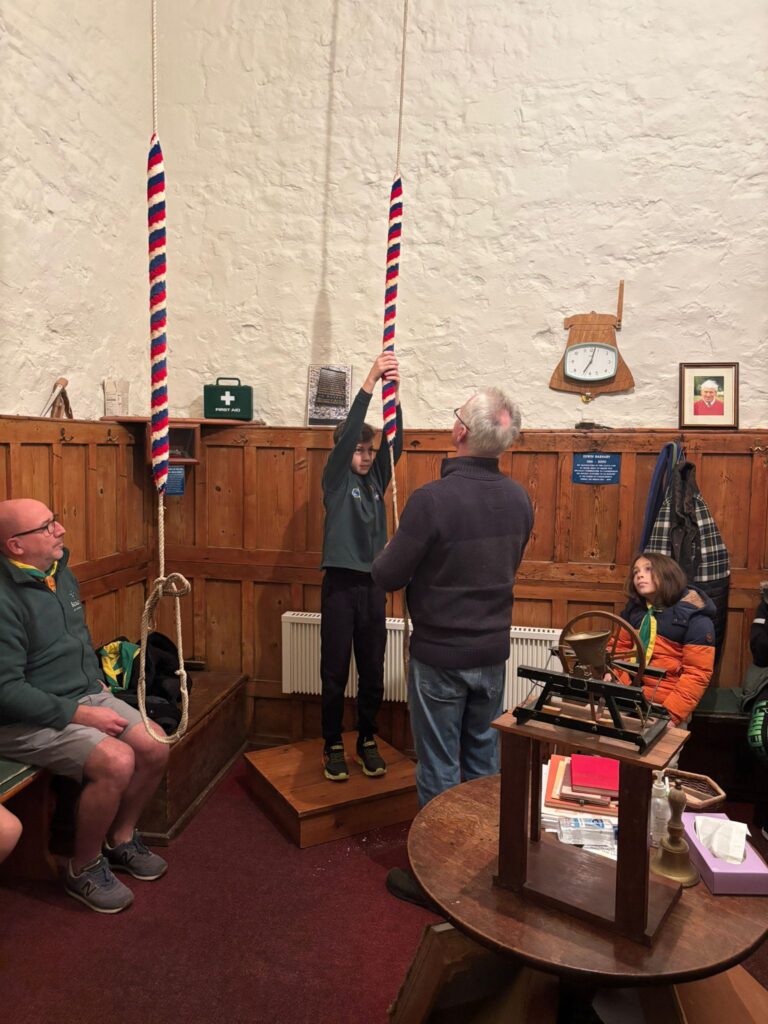 Yes, the Cubs went to St Mary’s Church in Fordingbridge to learn about bell ringing. They split into two groups and whilst one did an observation quiz around the Church, the other group went into the tower where they learnt about the bells. All the Cubs and leaders had the opportunity to try ringing one of the bells and we hope the nearby residents weren’t disturbed too much!
