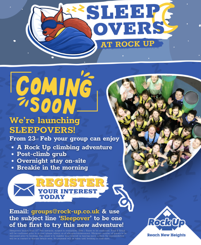 We’ve heard from Rock Up that, from 23rd February, they’re offering overnight sleepovers at Rock Up.